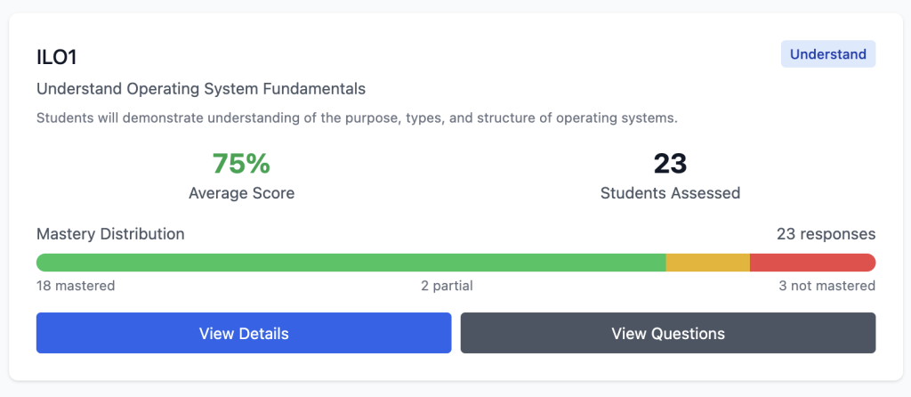 Eduvaluate stands out by offering accreditation support for standards like ABET and SACSCOC. The platform streamlines the process with automated evidence collection, outcome mapping, and comprehensive reporting—making accreditation workflows smoother and less manual.